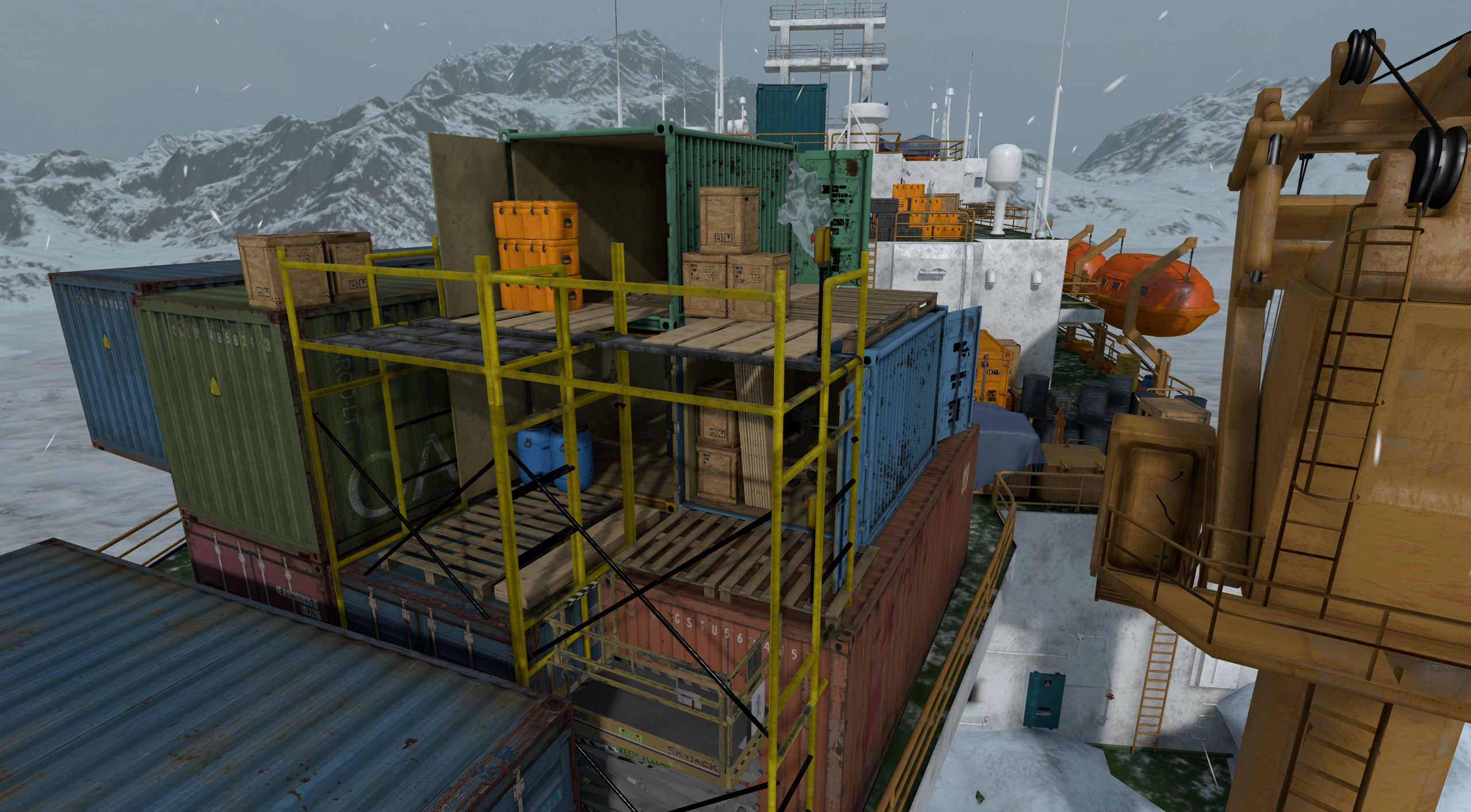 Покинутый корабль навсегда застыл во льдах, став мрачным напоминанием о неудачных экспериментах. Теперь он — арена ожесточённых боёв, где скрип металла и завывание ветра заглушают шаги противника. Найди укрытие, держи равновесие — и не дай льду стать твоей могилой.